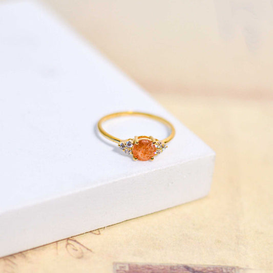 6 mm Round cut Sunstone with 3 Cz side stones Ring