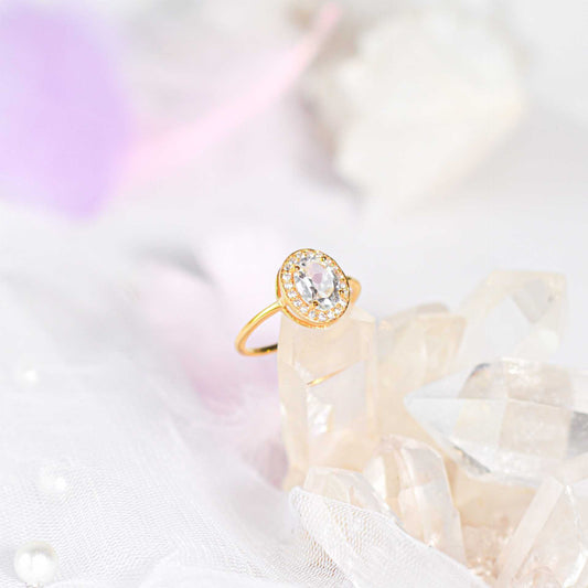8 x 6 mm Oval cut Rose Quartz with Cz Halo Ring