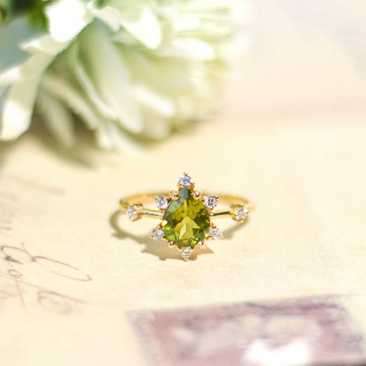 8 x 6 mm Pear cut Peridot Sunburst Ring