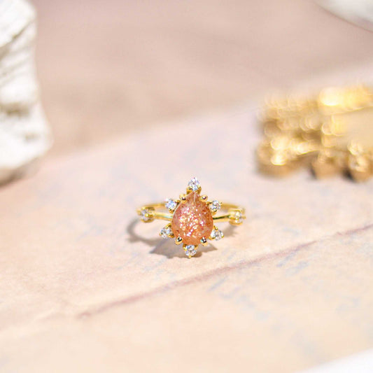 8 x 6 mm Pear cut Sunstone Sunburst Ring