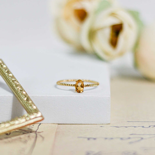 6 x 4 mm Oval cut Citrine Twisted Ring