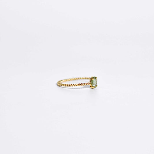 6 x 4 mm Oval cut Light Green Tourmaline Twisted Ring