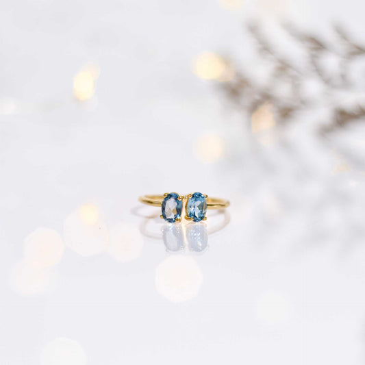 6 x 4 mm Oval cut London Blue Topaz Double stone Open Ring