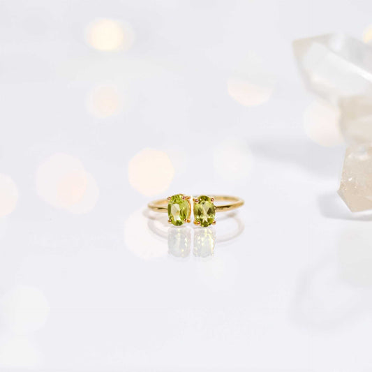 6 x 4 mm Oval cut Peridot Double stone Open Ring