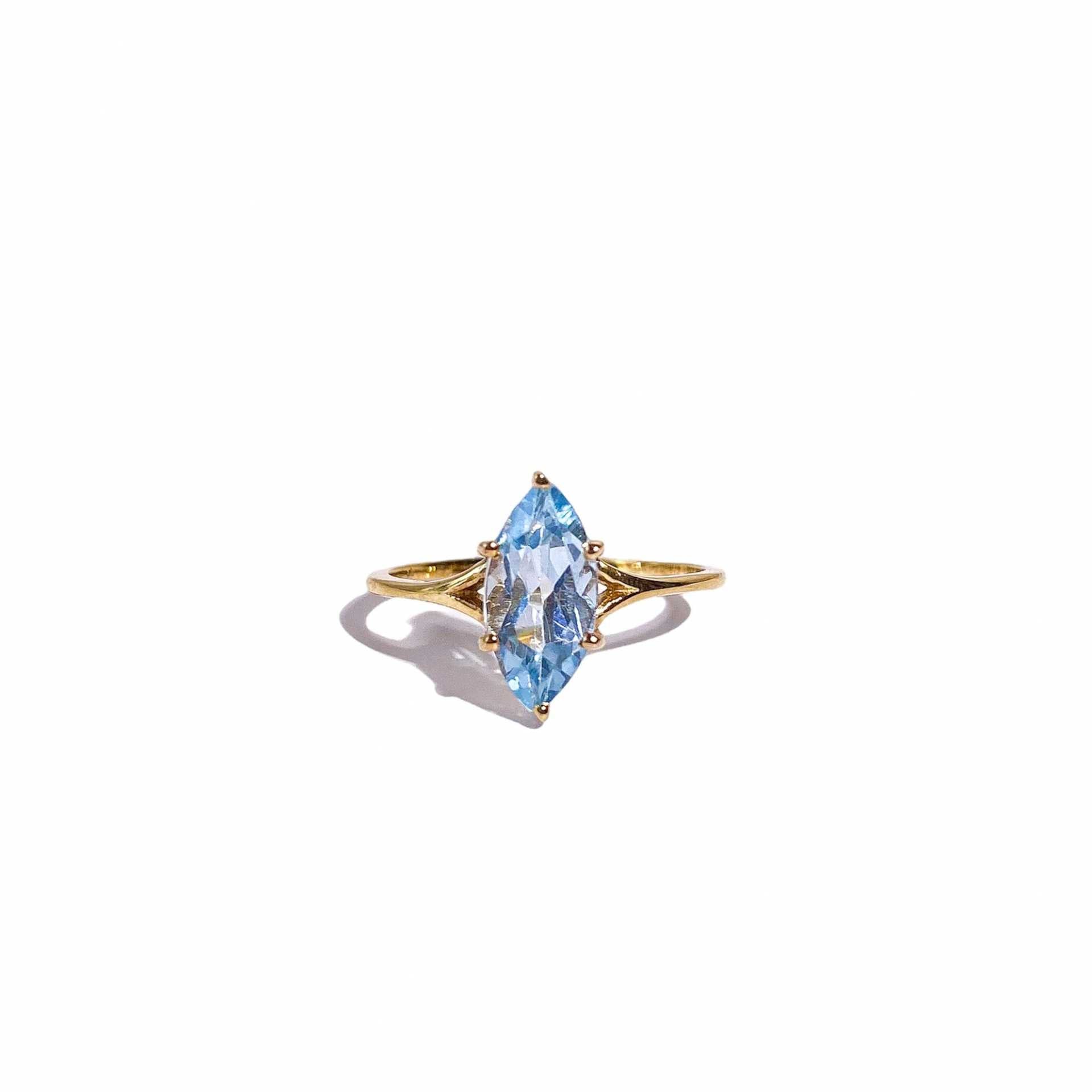 12 x 6 mm Marquise cut Swiss Blue Topaz Yellow gold plated Ring